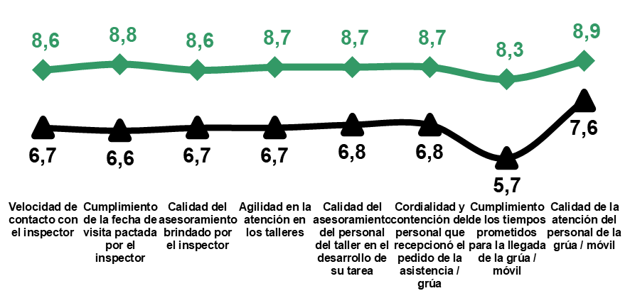Canales y gestión de siniestros con mejoras generalizadas El relevamiento muestra una importante mejora en todos los aspectos de la atención de y gestión de los siniestros de automóviles; destacándose por primera vez en varios años el incremento de la satisfacción en los tiempos de llegada de las grúas.